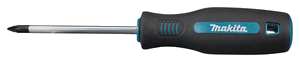 6-delige Makita schroevendraaierset met magnetische punt. De anti-slip handgrepen hebben een praktische maataanduiding op de achterzijde.