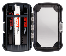 - Makkelijke gereedschapsloze zaagbladwissel: hendel op de buitenkant van de machine werpt een (heet) zaagblad automatisch uit.