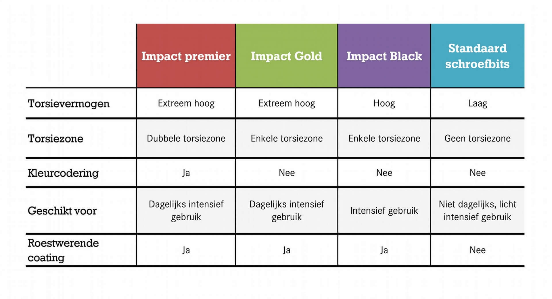 sterkere staallegering dan Makita Impact Black en Impact Gold-bits.