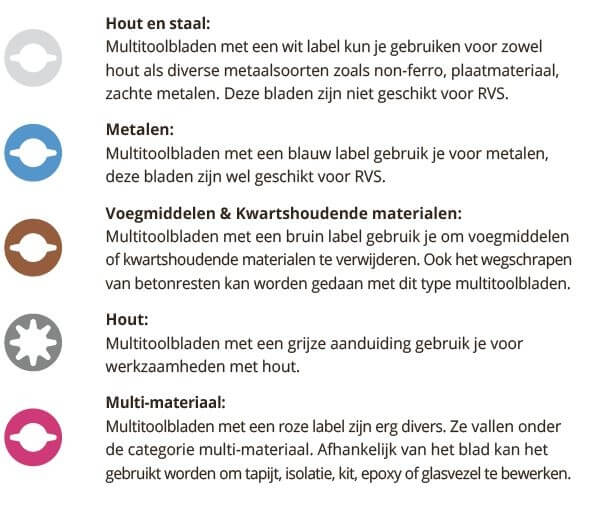 De multitool is een erg diverse machine. Voor deze machine zijn er legio aan accessoires beschikbaar. Op de DTM52 passen drie systemen: Starlock, Starlock Plus en Starlock Max. Het voordeel van deze systemen zijn snelle bladwissel, universeel systeem en universele kleurcodering.
